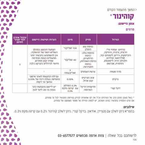 * בשל מגוון הזנים הרב של הפרחים הנ"ל אין לנו אפשרות לבדוק בטיחות התכשיר לכל זני צמחים. אם טרם התנסית בתכשיר בזנים השונים, יש לנסות תחילה על מספר מצומצם של צמחים.